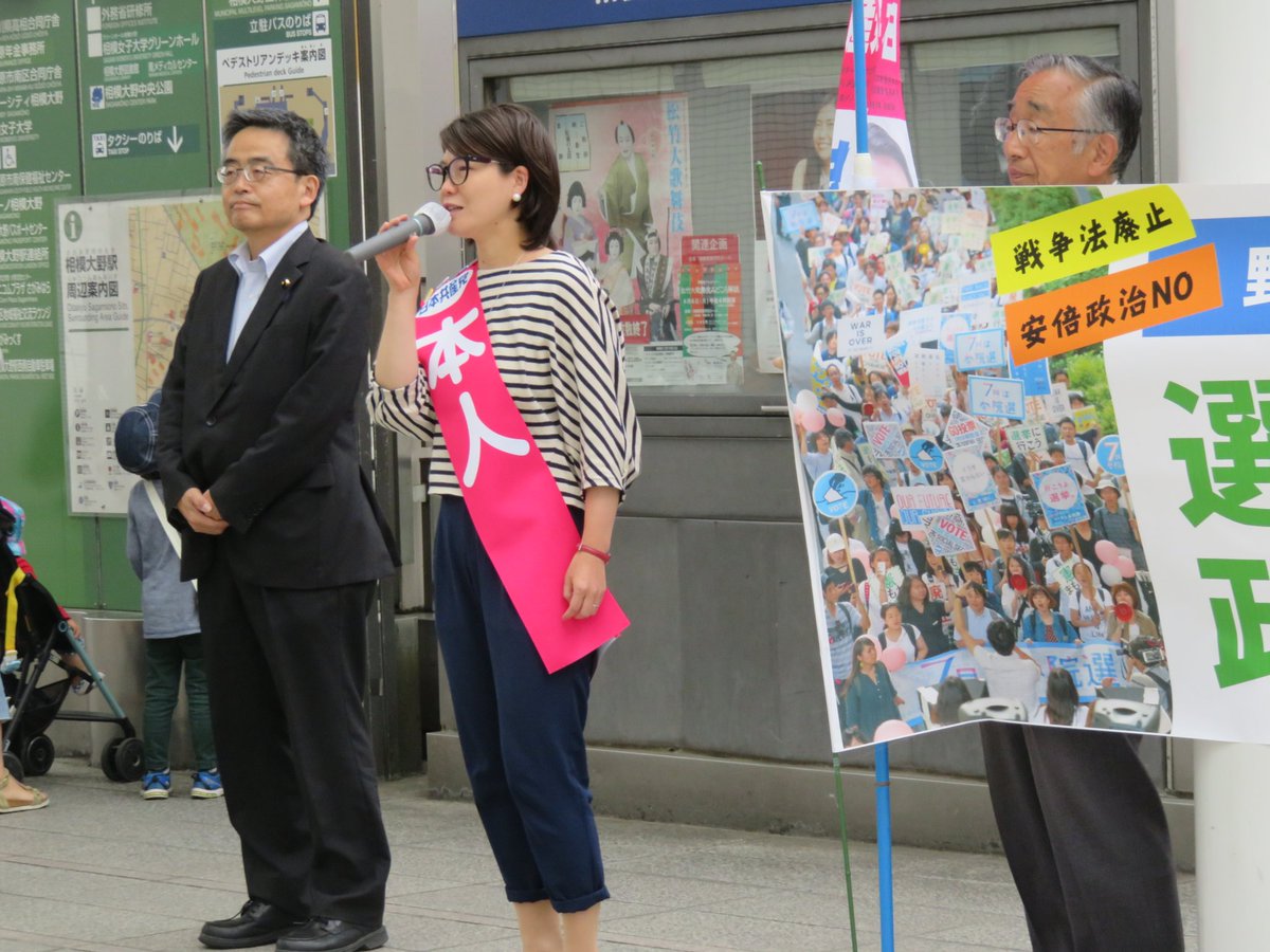「孤独な子育てに涙、8時間働けば誰もが普通に暮らせる社会に共感」横須賀・ママたちの憲法カフェ、橋本駅・相模大野駅頭宣伝