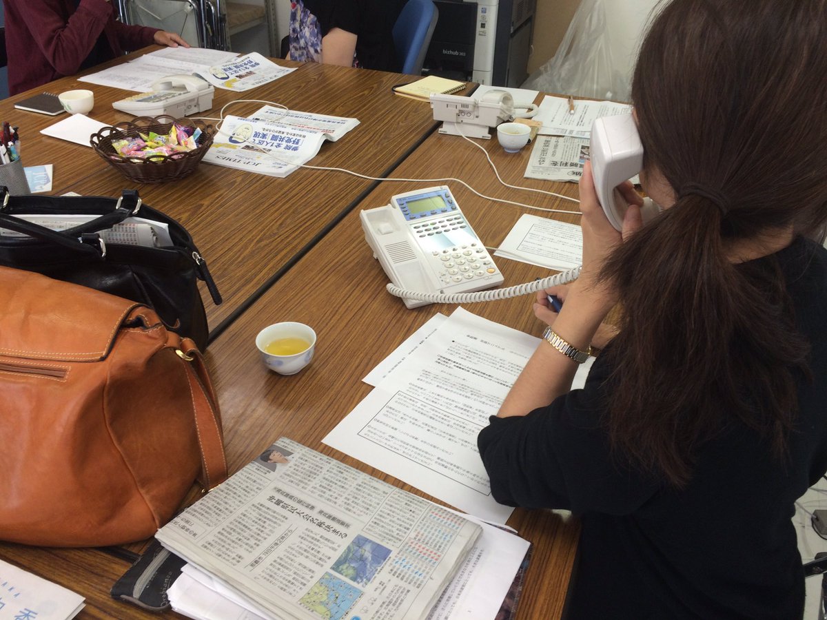 出勤時に合わせて戸塚の日立門前宣伝をしました。「黒字なのに大量のリストラは許せない!」と訴え、”ブラックパンフ“を配りました。握手を求め「応援してます!」と言う方も。同時に、withゆか(勝手連)の皆さんによる電話かけ作戦がスタート。 16時まで頑張るとのこと。 心強いです。