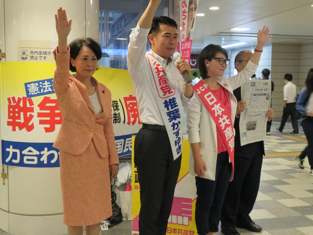 全県一斉宣伝で朝の戸塚駅。定例で何時も宣伝を行っている場所なので通勤通学の人たちがみんな見て行きます。地元の人たちに声をかけ、対話や握手も。後半は畑野君代議員、椎葉かずゆき比例予定候補も一緒で賑やかに。