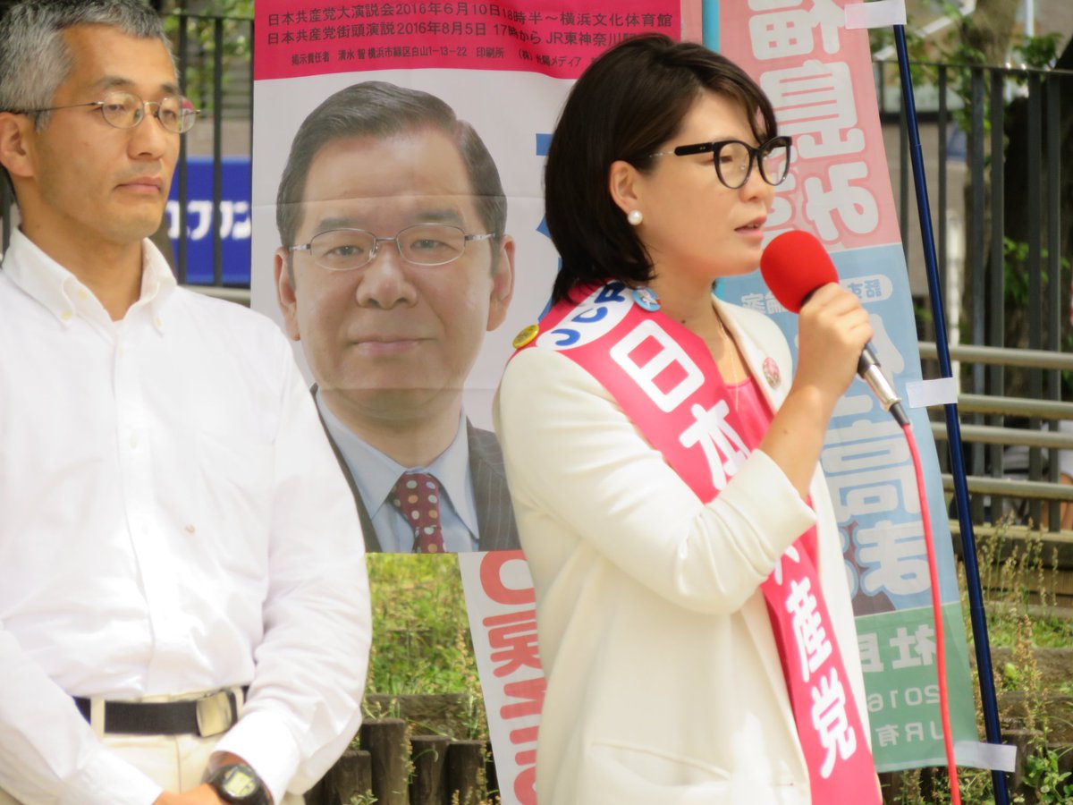 横浜公園で「2016参院選神奈川選挙区公開討論会を実現する主婦の会」主催の青空公開討論に参加。 参加はおおさか維新、民進、社民そして飛び入りの無所属の予定候補が加わって5人。社会保障とその財源、消費税など各党が主張し各党間の討論も行われました。