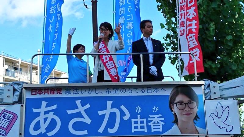 鹿島田駅での演説。2つの劇団の俳優さんや脚本家のみなさんが私の演説を聞きに来てくれました。「劇団員のなかでもあさか由香の支持が広がっているよ」と激励いただきました。頑張ります!