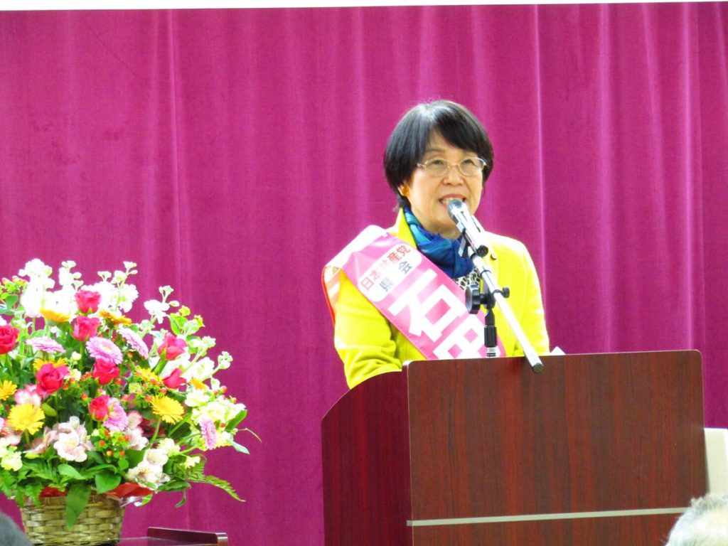 川崎市高津区演説会。養護施設で子どもたちと寝起きを共にし、施設に入所している障がいのある子どもと共にすごし、保育現場で働いてきた、認知症の夫の介護をしてきた石田和子県会予定候補の心のこもった訴え 「どの人にも大切な人権がある、それはみな平等であり、等しく尊重されなければならない」