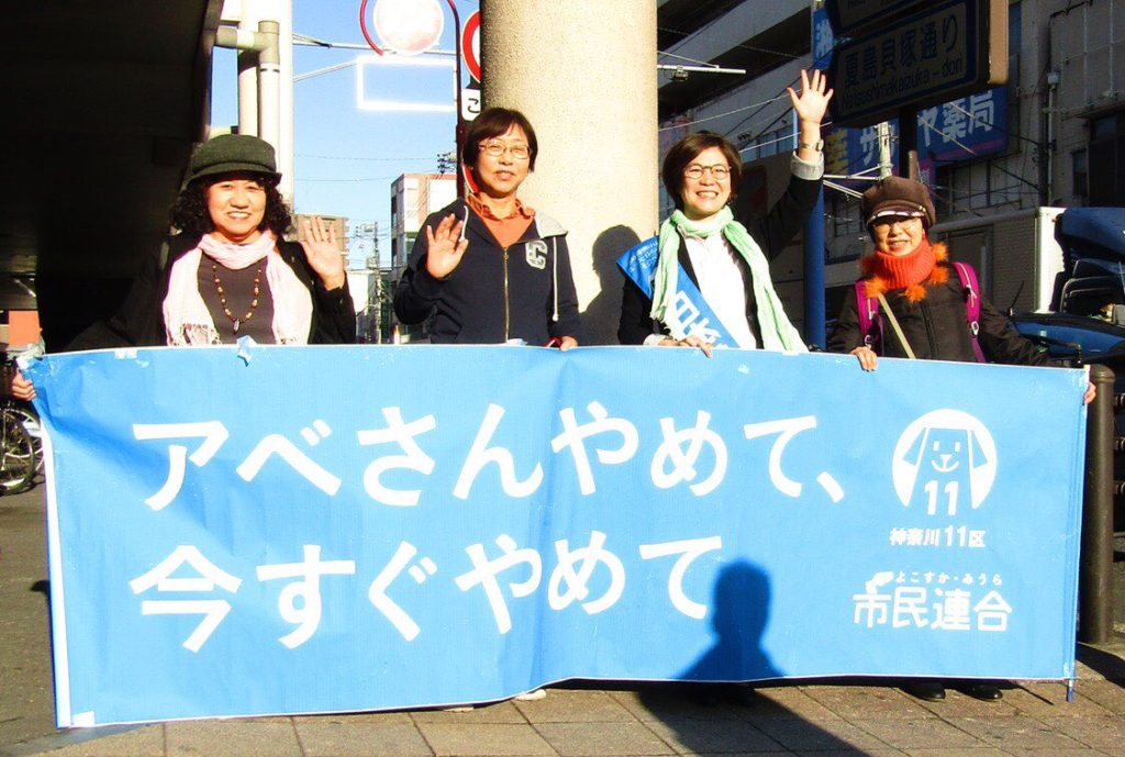 11区よこすか・みうら市民連合の「ワンワン」宣伝。 今日はスタンディング。 「アベさんやめて、今すぐやめて」 このスローガンが響くなぁと感じます。