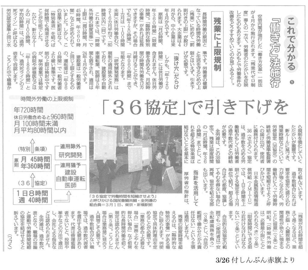 #働き方改革 一括法案が4月から施行されます。「残業代ゼロ制度」導入の一方、労働者のたたかいが反映され、残業の「罰則付き上限」が初めて設けられました。労働組合が #労働条件改善 につながる協定を結ぶことも可能になりました。厚労省指針も活用を! #8時間働けばふつうに暮らせる社会へ