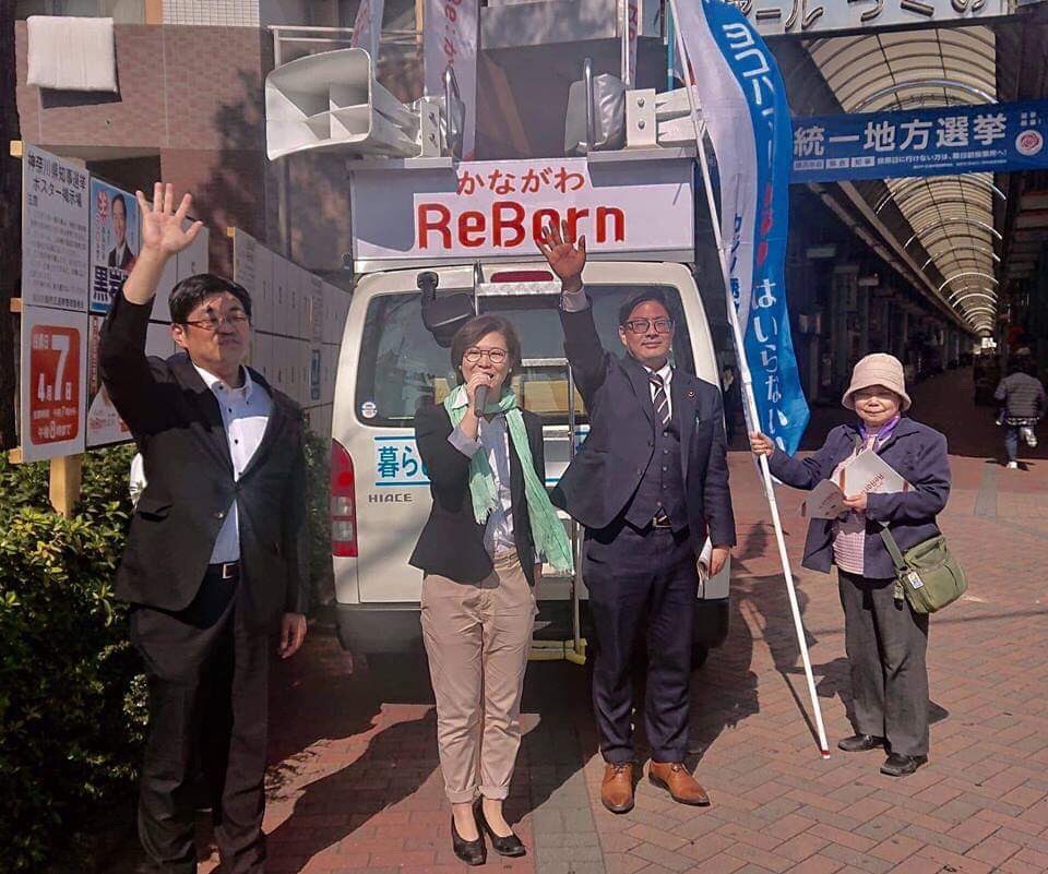古谷やすひこ市議、木佐木ただまさ県議と、岸まきこ知事候補の応援弁士。鶴見駅では「カジノなんていらない」「中学校給食ぐらい実現して」「雨が降る中、バスが混雑していて乗れずに次のバスまで待った。80代にはきつい。リニアより地元交通機関の援助を」など市民の皆さんからも様々な声を伺いました