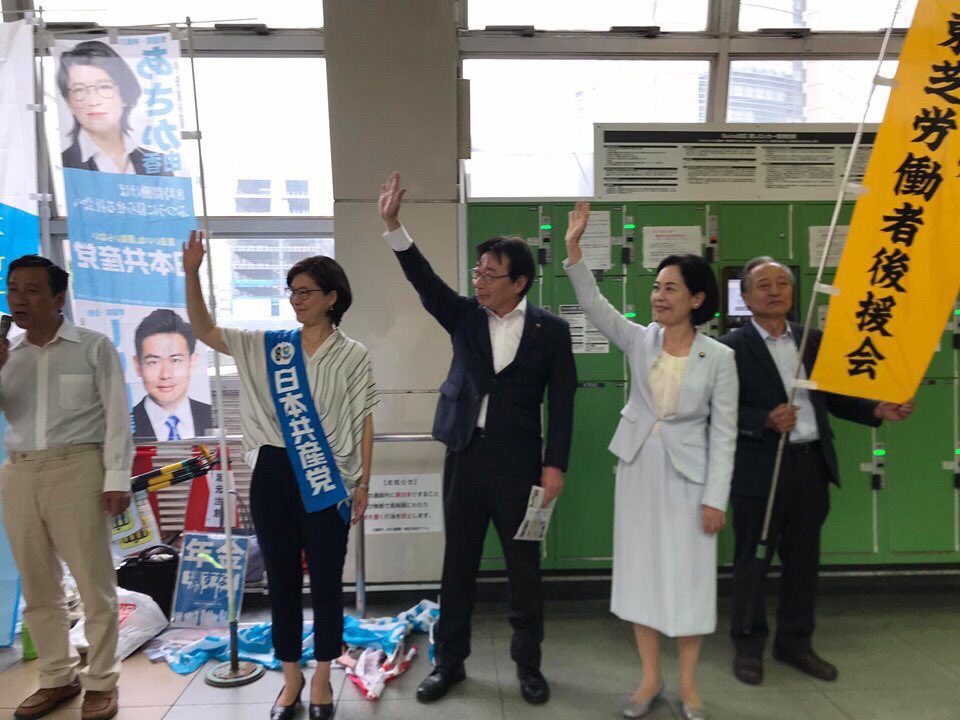 20日朝、はたの衆院議員らと東芝川崎本社に向かう労働者の皆さんに宣伝。この数年間「業績悪化」「経営合理化」と言われ、何人が職場を辞めていったか。「参議院選挙での一票で、政治を変え、職場も変えましょう」と東芝OB後援会員の訴えが、うつむき気味に歩く一人でも多くの人の心に届いて欲しい。