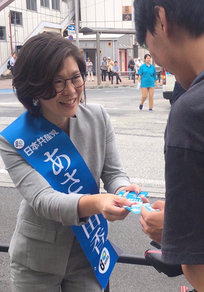 ツイッターで知り来られた女性は「大企業優遇より中小企業支援の政策に共感した」と握手してくれました☺️