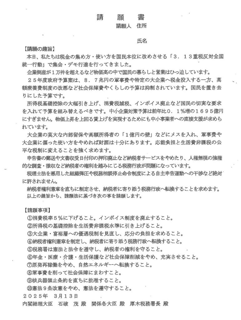 消費税廃止を目指しまず減税を!インボイスは廃止を!